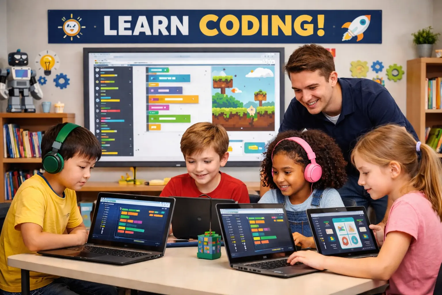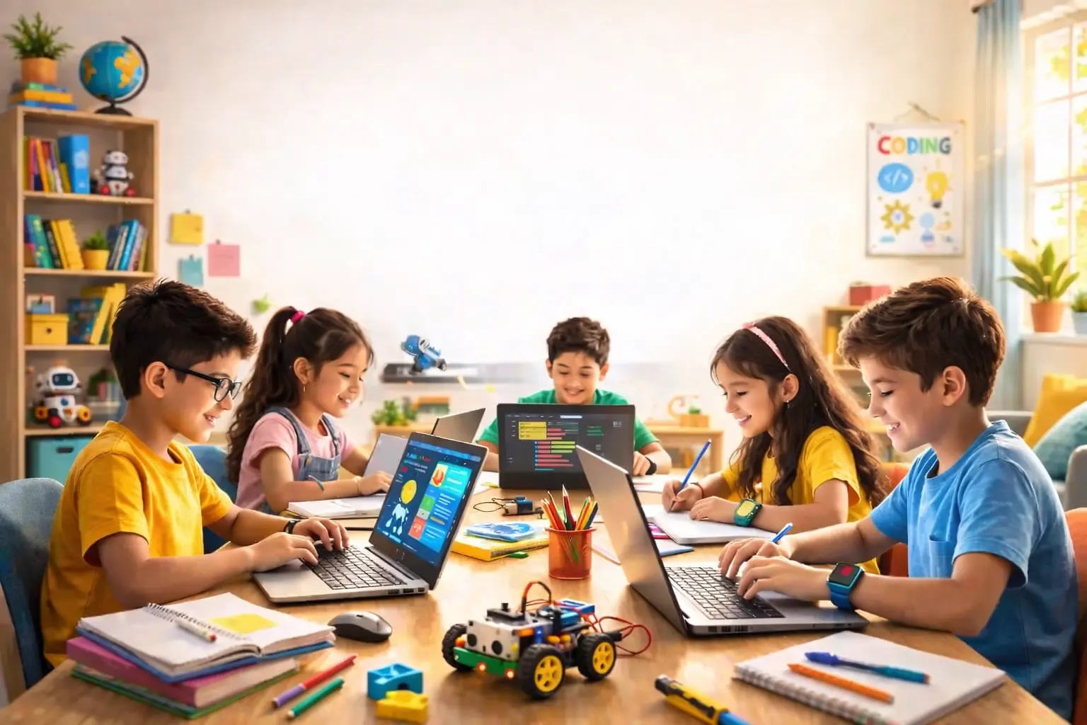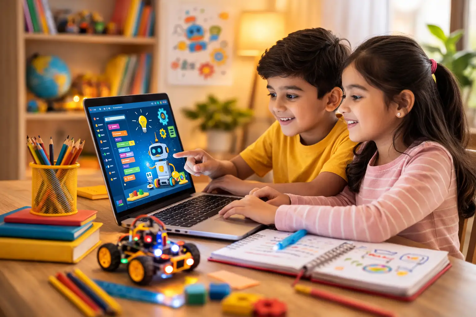 At Brainy Bots, children don’t just learn concepts — they build real projects. From mini games and simple apps to basic robotics and fun AI activities, every session is practical and engaging. Learning here is a perfect blend of creativity, logic, and fun.