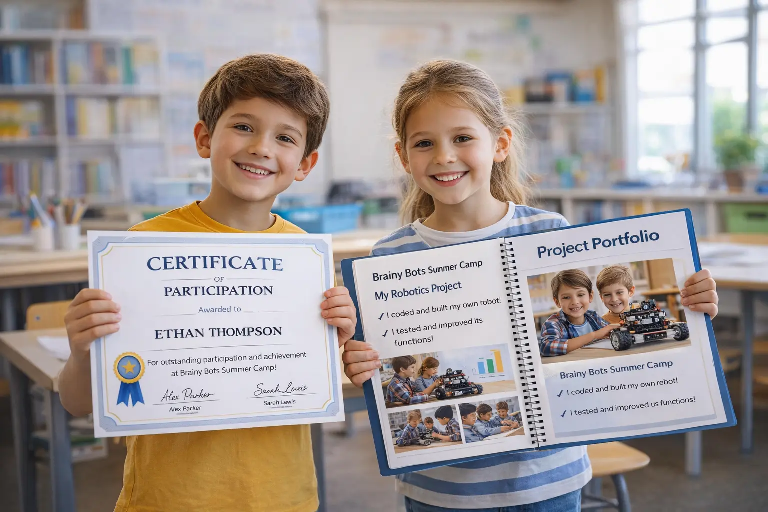 At the end of the summer camp, students receive: ✔ Participation Certificate ✔ A Real Project Portfolio (that parents can proudly review and share)